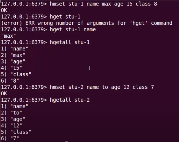 해당 key에 있는 field의 value를 보여준다. - hgetall