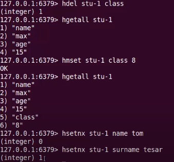 해당 key의 field만 지운다. (field와 value 둘 다 삭제) - hsetnx