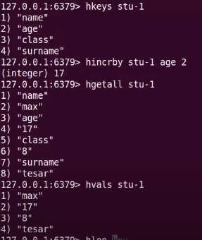 key에 존재하는 field의 value를 increment만큼 증가시킨다. - hvals