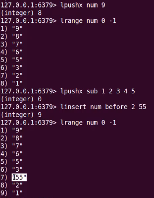 key가 존재하면 value들을 insert한다. (key가 존재하지 않으면 0을 반환) - linsert
