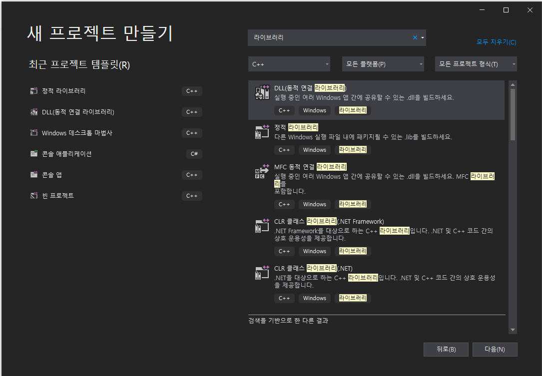 만들고자 하는 라이브러리를 선택. (여기서는 동적 라이브러리를 선택)
