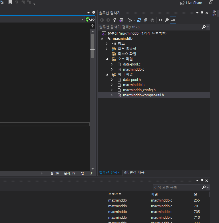속성 → C/C++ → 모든 옵션 → 전처리기 정의에 설정된 값을 따라야함 (라이브러리를 쓰는 솔루션과 맞춰야함.)